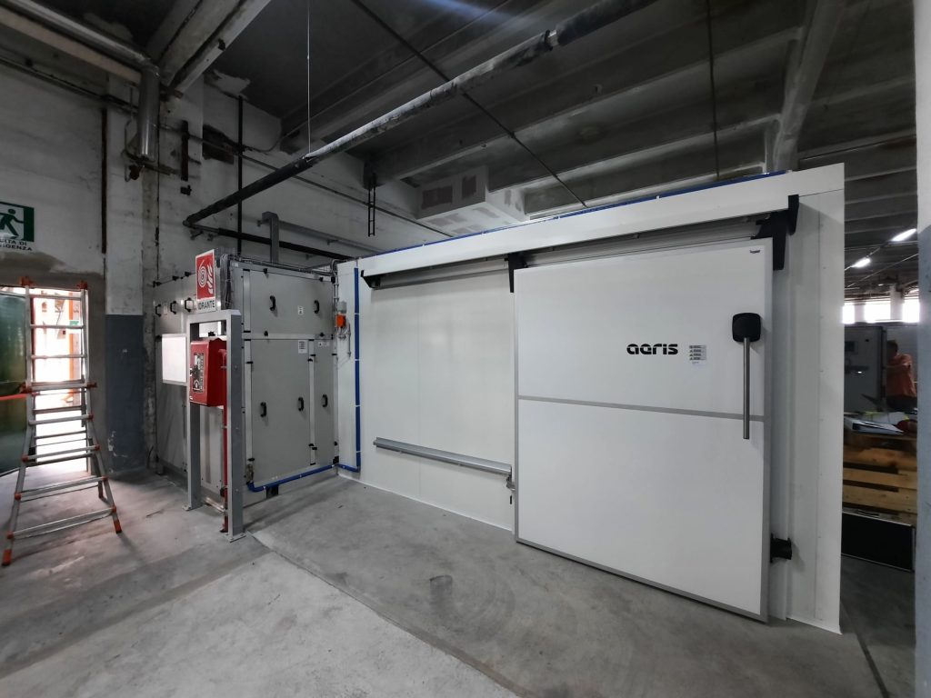 Le camere sono realizzate in pannelli sandwich con strati esterni in lamiera zincata pre-verniciata e materiale isolante interno; garantiscono eccellenti prestazioni in termini di isolamento termico e rapidità di montaggio, sono complete di sistemi di controllo automatico della temperatura e dell’umidità, anche in ottica di integrazione con sistemi di supervisione dell’impianto.