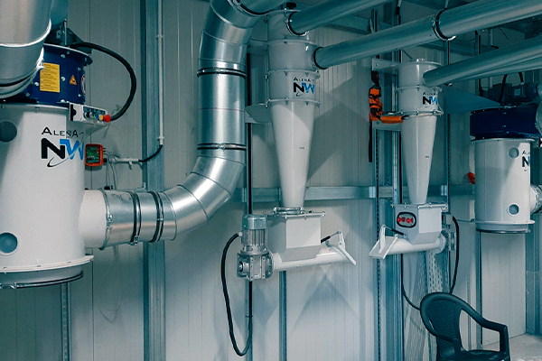 A seconda della configurazione dell’impianto e delle caratteristiche del materiale, è possibile adottare diverse tecnologie di separatori industriali: il prefiltro a disco, il separatore inerziale, e il compattatore di fibre per lo scarico controllato delle fibre raccolte.